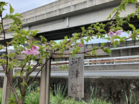 昨年植えた河津桜が咲きました。奥に見えるソメイヨシノはまだまだ今年はつぼみが固い!どちらも私たちが植えた木!立派に育って欲しいと思います。